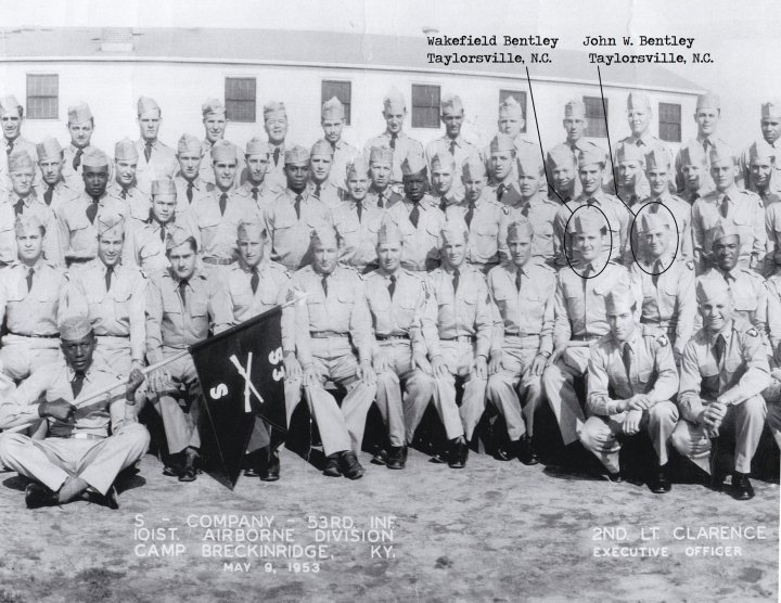 John W. Bentley, S Co., 53rd Inf. Regt., 5-9-53 PFC Nick J. BareskySgt. Adam J. Raskinski, Field 1st Sgt., 1st Lt. Josef M. Orndoff, C.O.Wakefield Bentley, John W. Bentley2nd Lt. Clarence H. Lonsdale, SFC Willie Patty, Mess Sgt., Neil Swinehart, Supply Sgt. Share this: Click to share on X (Opens in new window) X Click to share on Facebook (Opens in new window) Facebook Like Loading...