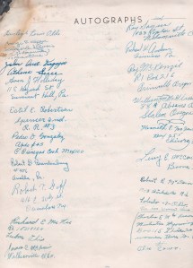 98th Divison men at Evansville: Lt. Lunning, Lt. Nevins, Allen Fitzsimmons, Lt. Reckeweg, Bill Sprinkle, Louis Fisher, Orval Hadley, Lt. Ray Thomas, and Lt. Eddie Murray